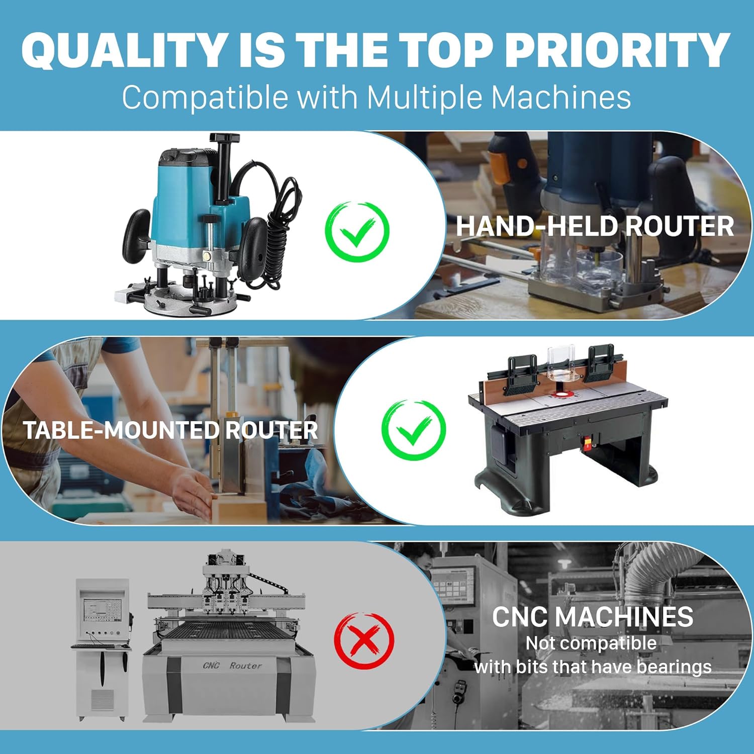 - SICWOOD 6pcs Roundover Router Bit Set - Round Over Router Bits 1/4 Shank with 6 Bearings 3/8", Carbide Corner Rounding Edge-Forming Bit, for Round Over Beading, for Rounding Trim