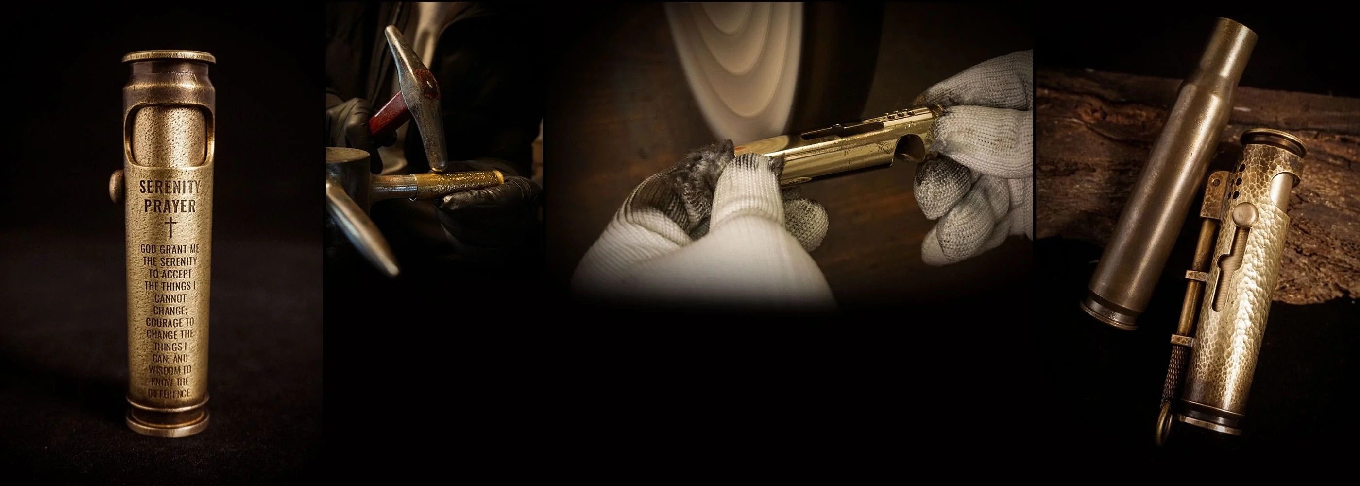 Crafted entirely by hand from solid brass, the Classic Bullet Shell Lighter embodies strength, precision, and understated luxury. Inspired by the raw power of ammunition design, its smooth lines and aged finish tell a story of timeless craftsmanship.