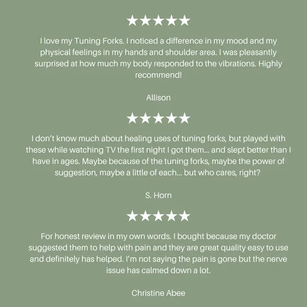 Game changer for my migraines! I use the 136Hz on my temples when I feel one coming on. It doesn't always stop them completely but definitely reduces the intensity. The quality is amazing - dropped them twice (oops) and they still ring perfectly.--Lisa H.